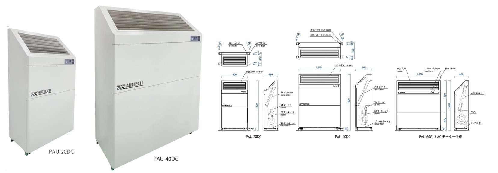 ●ACモーター仕様のPAU-60Gのほか、大風量タイプの機種もあります。