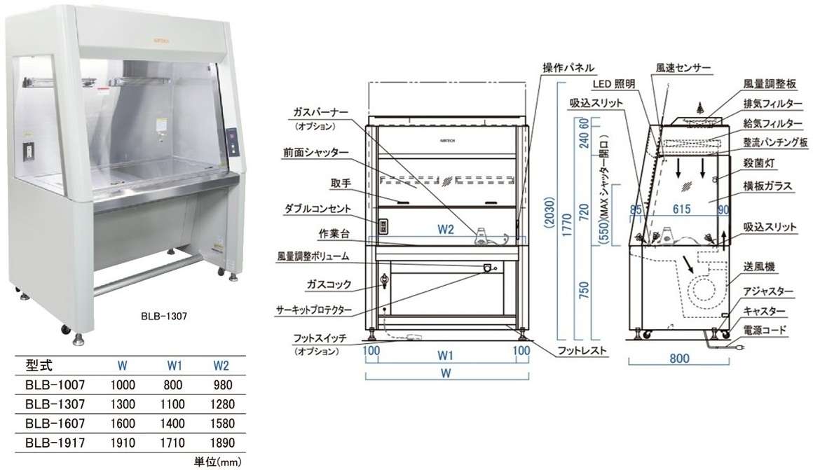 リサイクル気流方式で、風速バランスに優れています。無菌操作が必要な