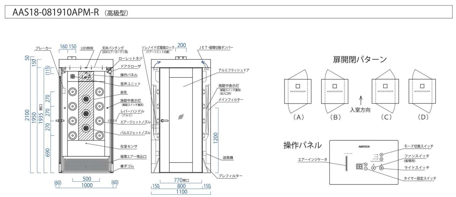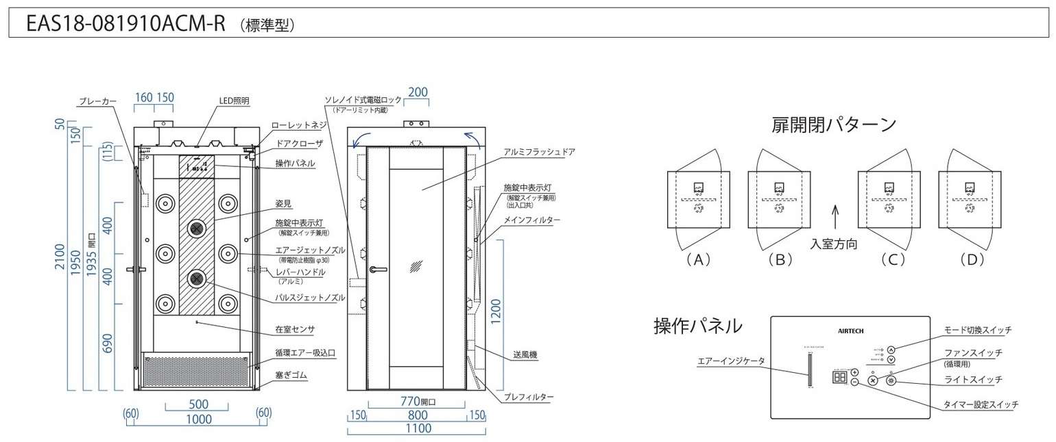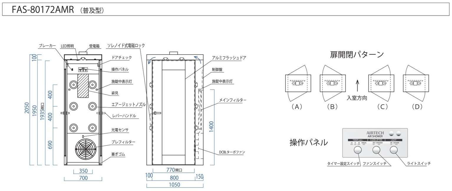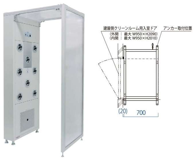 既存ドアに合わせて設置可能なセルフセッティング式エアーシャワーです。